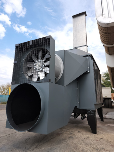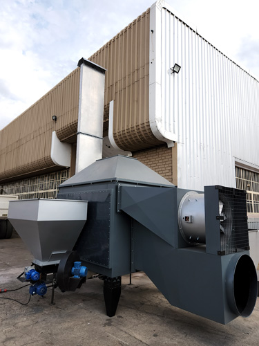 Size with hopper and ductings: 4 meters x 2.8 meters x 3 meters (height)